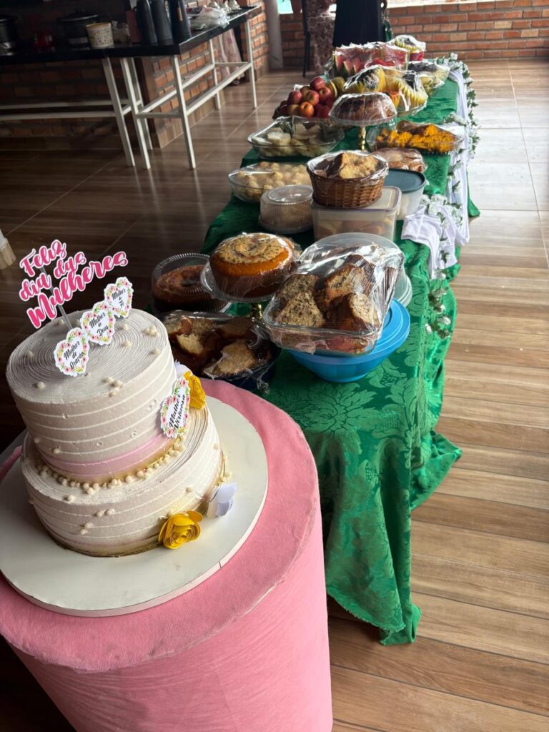 Além do aspecto espiritual, o encontro também teve forte caráter social. Durante a tarde, foram distribuídas cestas básicas, reforçando o compromisso do grupo com a solidariedade e o cuidado com o próximo. As participantes também puderam desfrutar de um ambiente acolhedor, com sorteios de brindes e um coffee break especial preparado para o momento de confraternização.